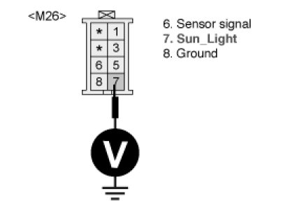 2. Measure voltage value between terminal "7" of autolightsensor and chassis ground.