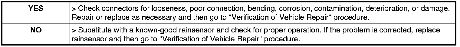 Integrated Memory System - B1905 Rain Sensor Fault 1 - Component Inspection