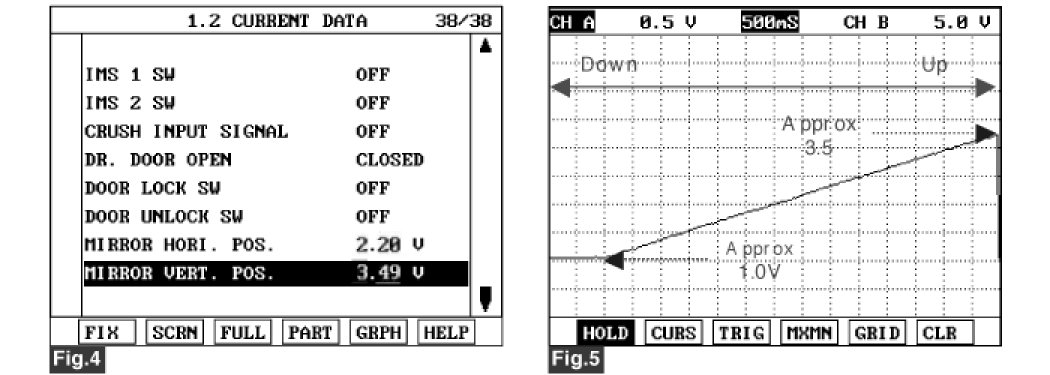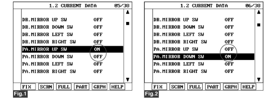 Fig.1), Fig.2) Current Data of right outside mirror switch.