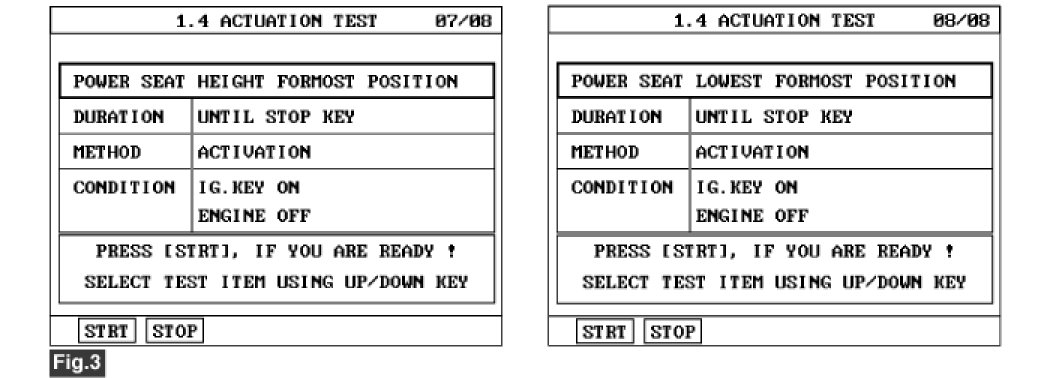 3. Select "ACTUATION TEST" mode on scantool and press [F1] to start