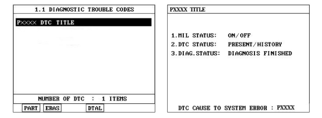 3. Select "Diagnostic Trouble Codes (DTCs)" mode, and then Press F4 (DTAL) to check DTC's information from the DTCs menu
