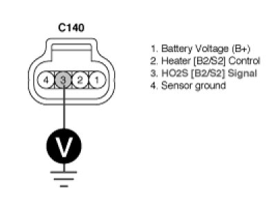 3. Measure voltage between terminal 3 of HO2S (B2/S2) harness connector and chassis ground.