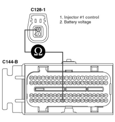 (1) IG "OFF" and disconnect injector connector and PCM connector.