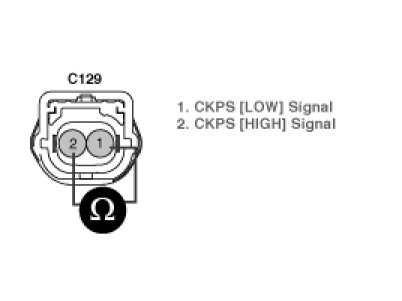 (2) Measure resistance between terminal 1 (2) of CKPS harness connector and chassis ground.