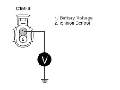 (3) Measure voltage between terminal 1 of ignition coil harness connector and chassis ground.