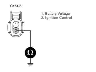(3) Measure voltage between terminal 1 of ignition coil harness connector and chassis ground.