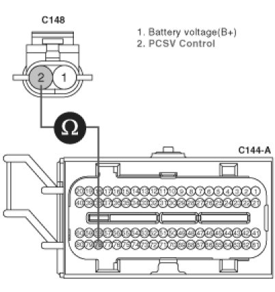 (1) IG "OFF" and disconnect PCSV connector and PCM connector.