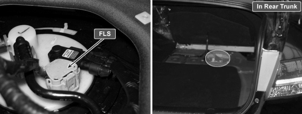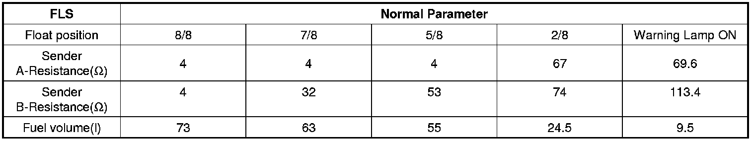 The Fuel Level Sensor (FLS) measures the fuel level in fuel tank and its information is used to supply the PCM with information regarding the monitoring condition of the EVAP canister purge system for leak detection. If the fuel level sensor is monitored for high or low stuck or difference between voltage of fuel level sensor and voltage deviation of fuel level sensor is exceeds limited value while driving, this is interpreted by the PCM as a fault.