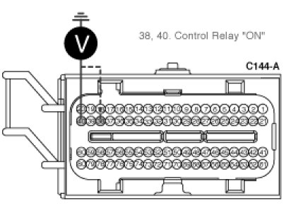 (2) Measure the voltage between terminal 38, 40 of PCM harness terminal and chassis ground.