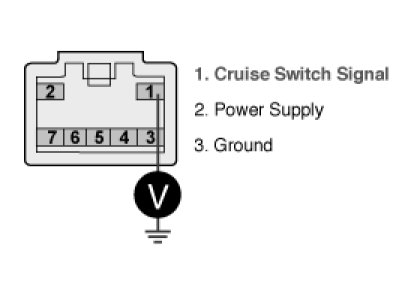 3. Measure voltage between terminal 2 of auto cruise switch harness connector and chassis ground.