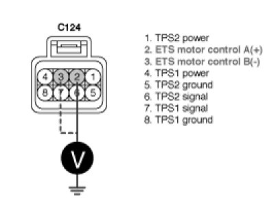 (4) Measure the voltage between terminal 2, 3 of ETS motor & TPS harness connector and chassis ground.