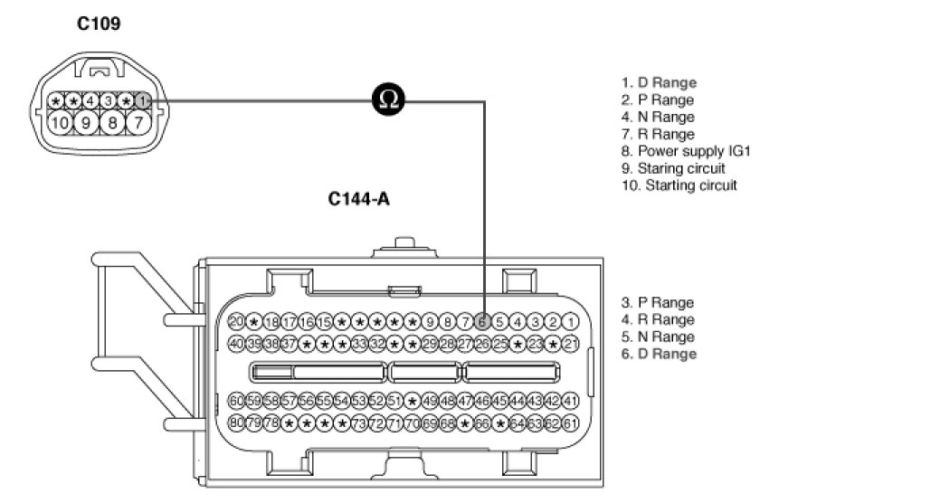 1. Disconnect "TRANSAXLE RANGE SWITCH" connector.