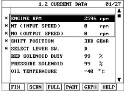 3. Monitor the "ENGINE SPEED, INPUT SPEED SENSOR, OUTPUT SPEED SENSOR, GEAR POSITION" parameter on the scantool