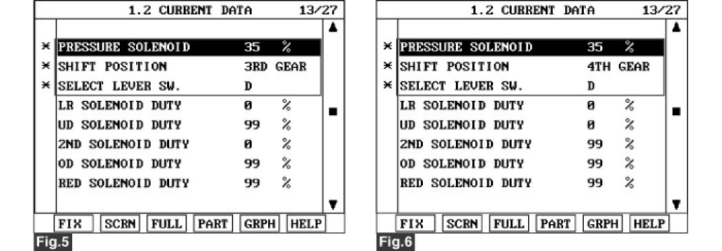 Automatic Transaxle - P0746 VFS Solenoid Valve Malfunction - Monitor Scantool Data