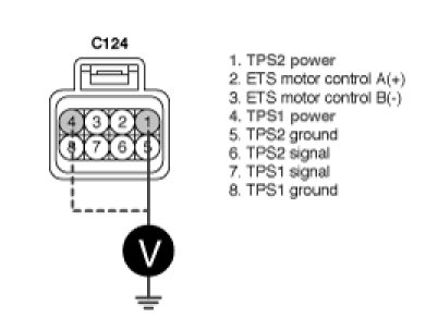 5. Measure voltage between terminal 4 of TPS harness connector and chassis ground.