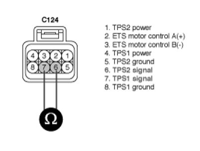 3. Measure resistance between terminal 6 and 7 of TPS harness connector.