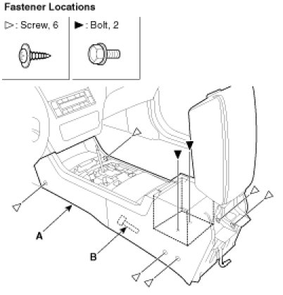 1. Remove the floor console (A).