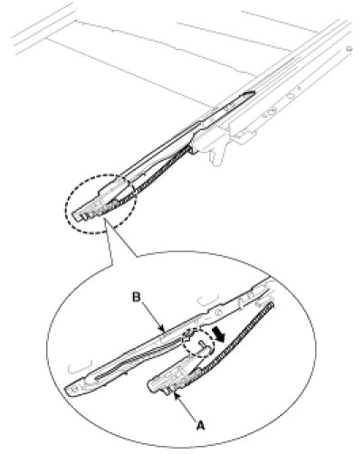 4. Remove the guide (A) and slide (B).
