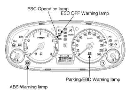 The active EBD warning lamp module indicates the selftest and failure status of the EBD.However, in case the Parking Brake Switch is turned on, the EBD warning lamp is always turned on regardless of EBD functions.The EBD warning lamp shall be on: