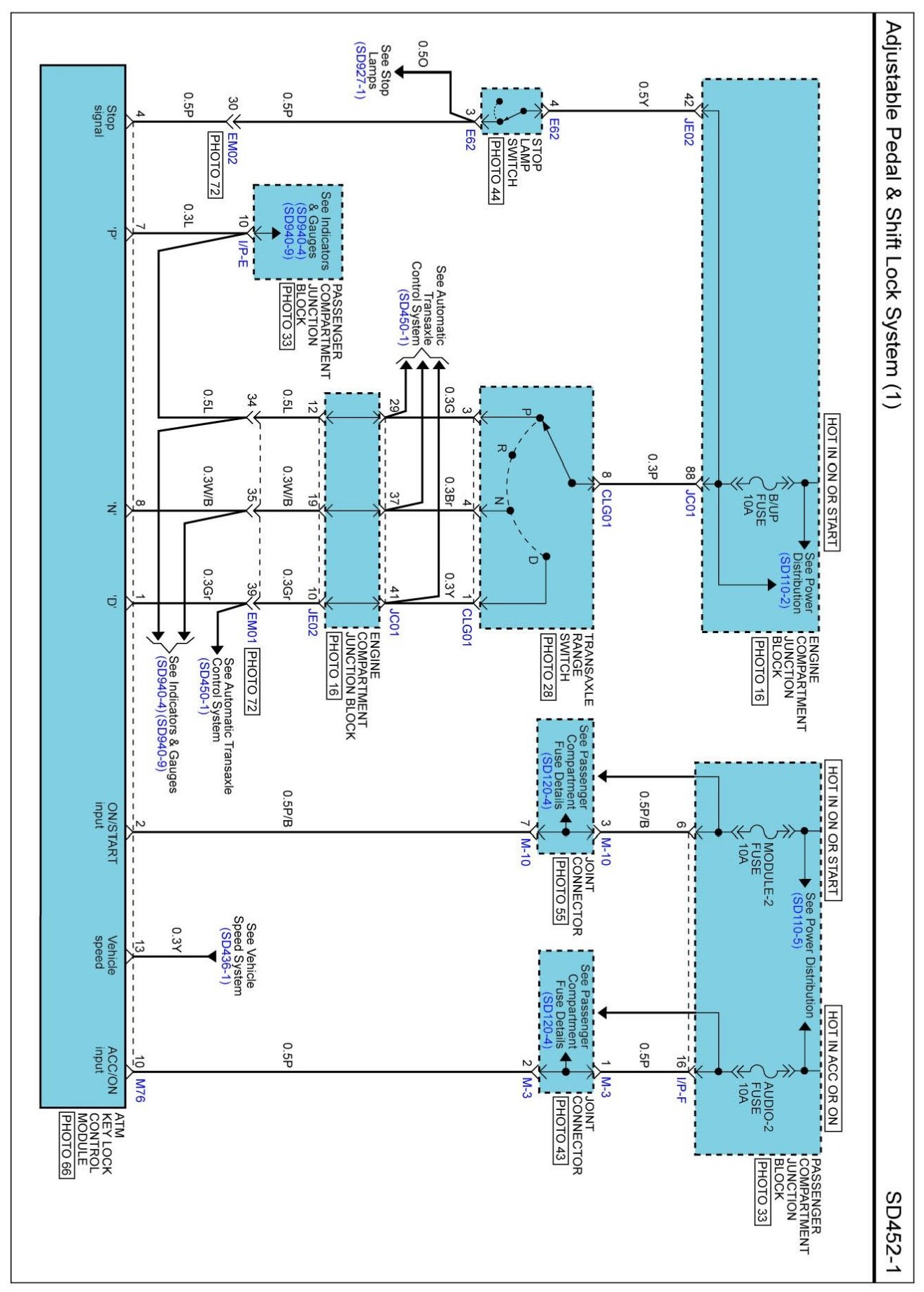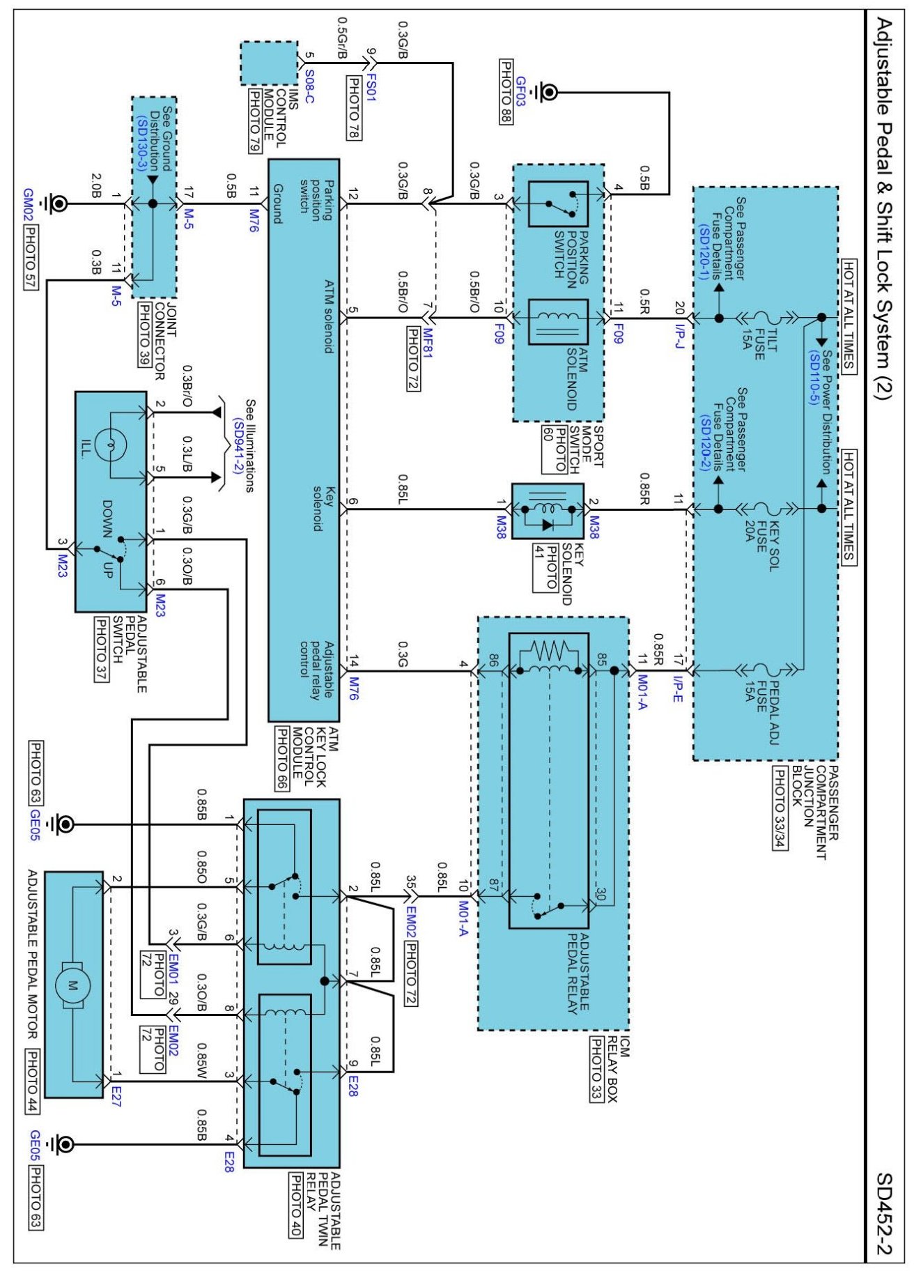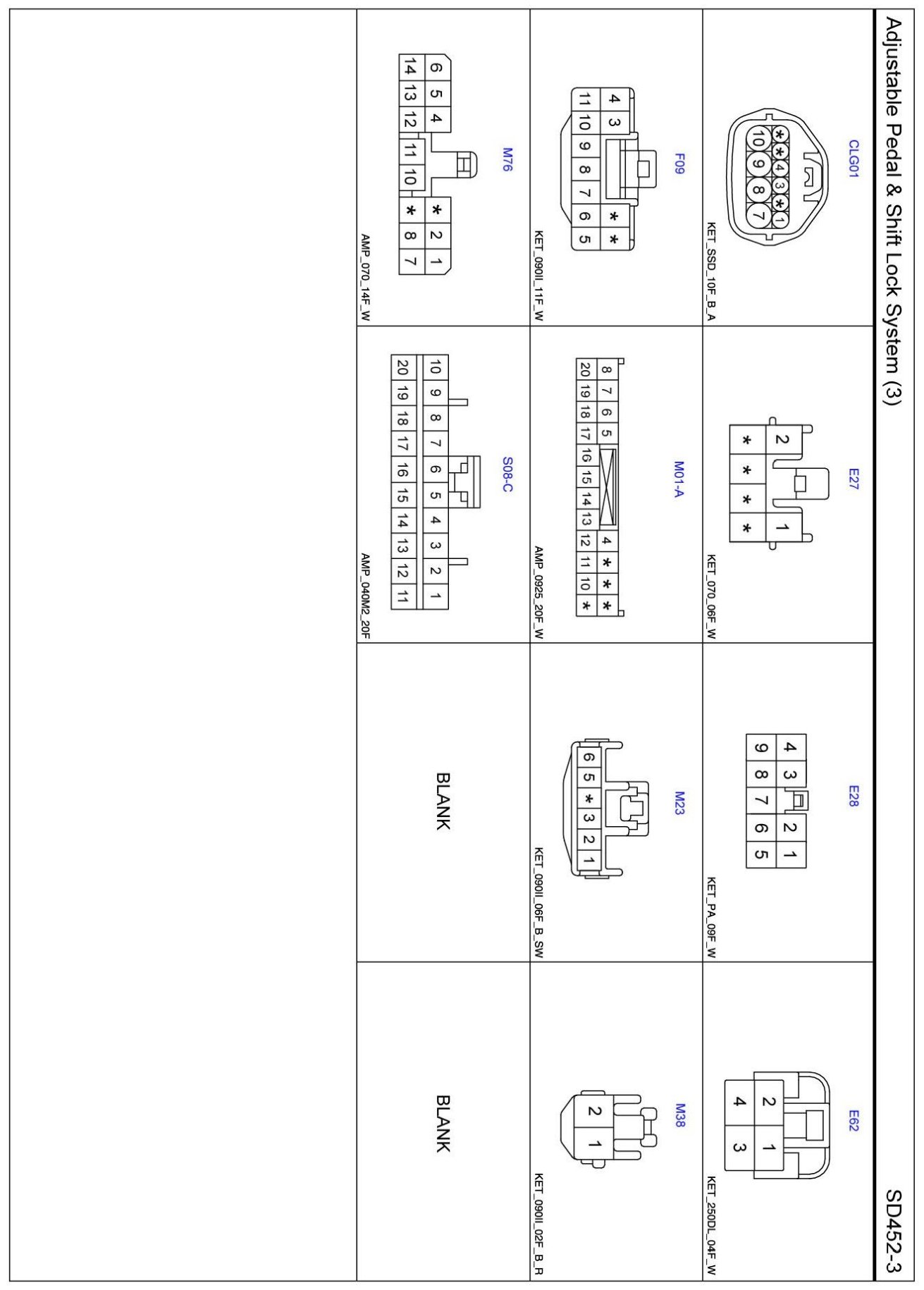 Adjustable Pedal & Shift Lock System (3) Connector Pin Outs: