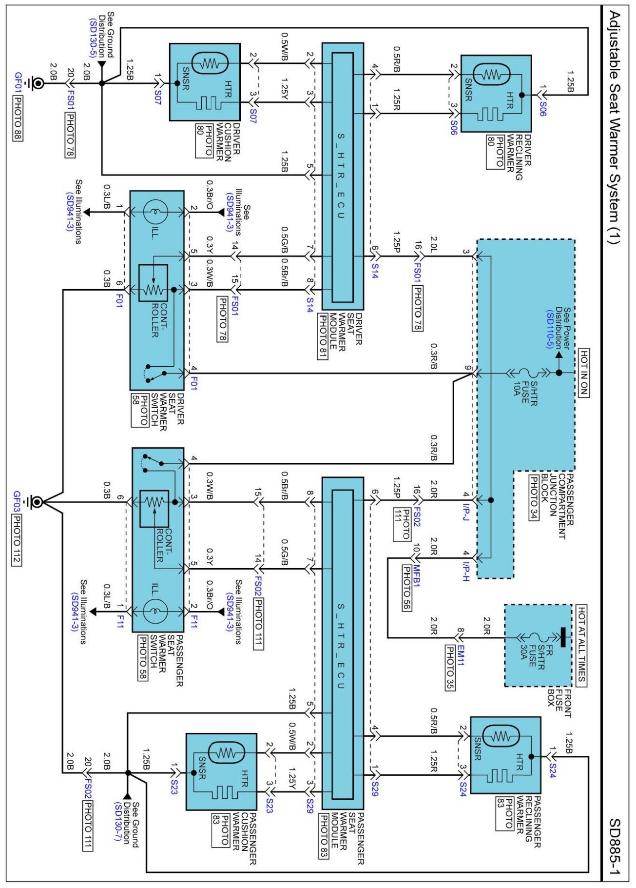 Locations: Location photographs (references to PHOTOS) referred to within these diagrams can be found via the photo number at the vehicle level under Locations by Photo Number. Component Locations