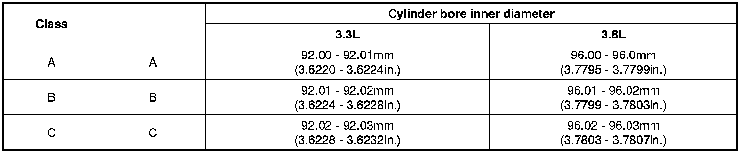 95.96 - 95.99mm (3.7779 - 3.7791in.) - 3.8L