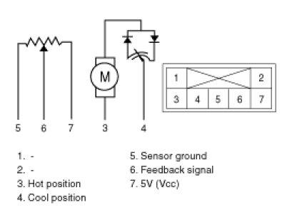 1. Verify the temperature control actuator operates to the hot position when connecting 12V to the terminal 3 and grounding terminal 4.