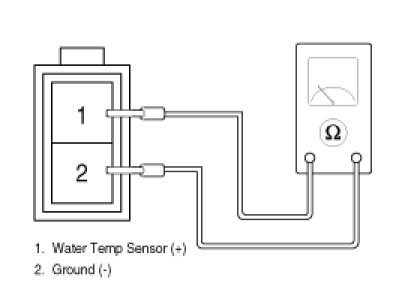 2. Using the multi-tester, Measure resistance between terminal "1" and "2" of water temperature sensor.