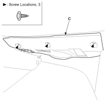 1. Remove the crash pad side cover (A), crash pad center under cover (B), under cover (C).