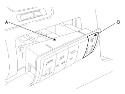 3. Remove the rheostat (B) from lower crash pad switch assembly.
