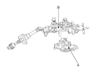 2. Disassemble the key lock assembly (A) from the steering column and shaft assembly (B).