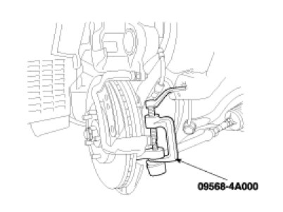 4. After removing both sides of the tie rod end self-locking nuts(A), remove the ball joint by using the special tool(09568-4A000).