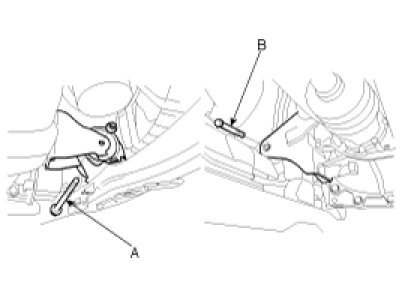 8. Remove the engine mounting bolts(A,B)