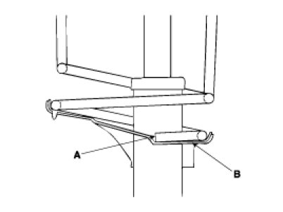 3. After seating the upper and lower ends of the coil spring(A) in the upper and lower spring seat grooves(B) correctly, tighten new self-locking nut temporarily.