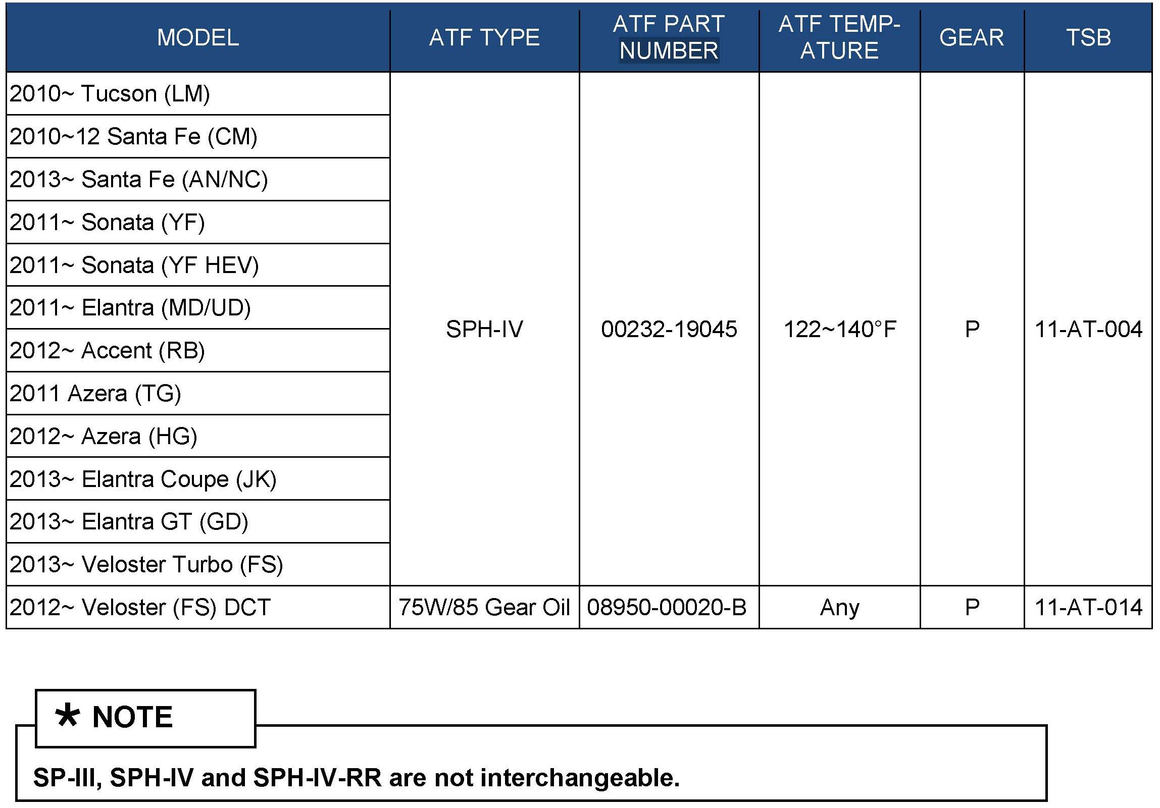 HYUNDAI SPECIFIED ATF AND ADDITIVE USAGE