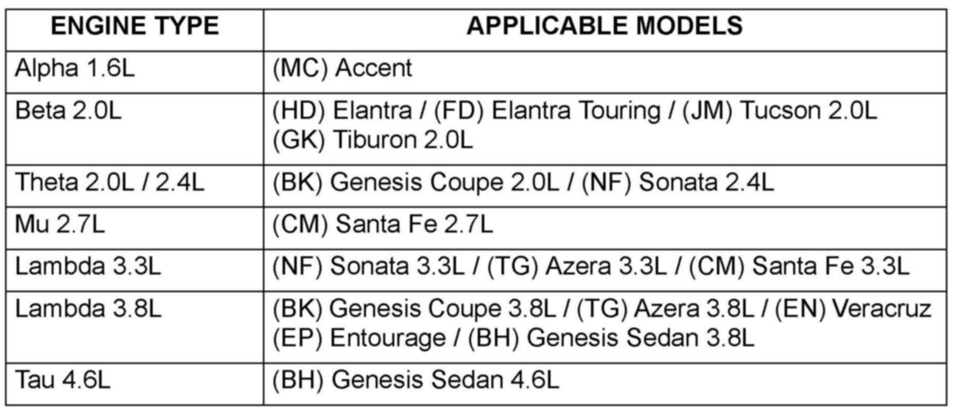 VEHICLES AFFECTED