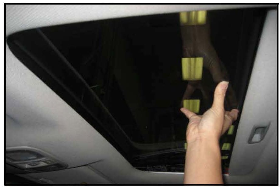 1. Tilt sunroof glass open to the fully tilt position to expose the rear section of weatherstrip.
