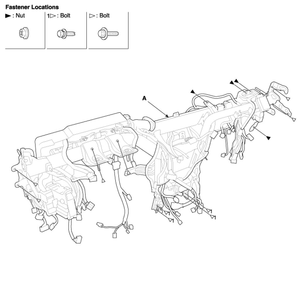- Before tightening the bolts, make sure the crash pad wire harnesses are not pinched.