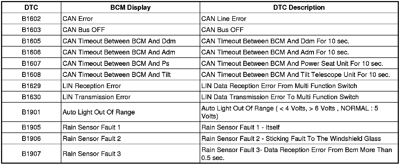 Self Diagnosis : BCM DTC List