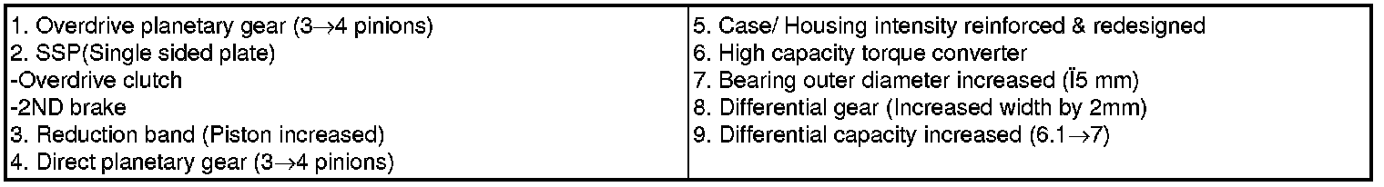 - SSP (Single Sided Plate) applied only on overdrive clutch and 2nd brake