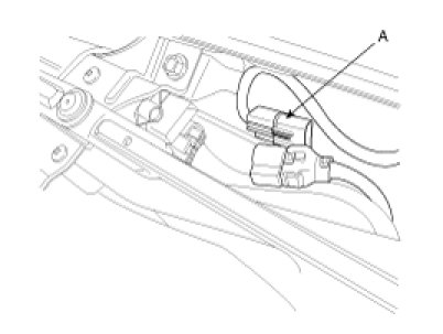 2. Disconnect the windshield deicer connector (A) from the wiper motor linkage.
