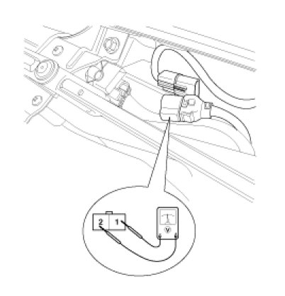 4. Turn the ignition switch ON and the windshield deicer switch ON, then measure the voltage between the terminals of harness side deicer connector.