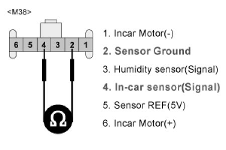 3. Measure resistance between terminal "4" and "2" of incar sensor.