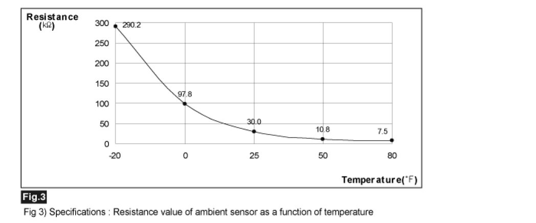 3. Measure resistance between terminal "1" and "2" of ambient sensor.