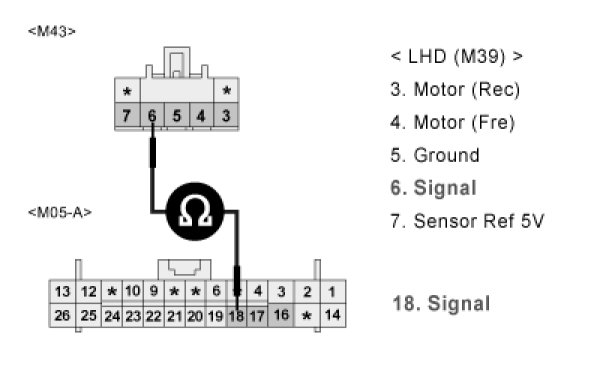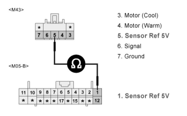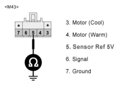 3. Measure resistance between terminal "5" of DR Air Mix actuator and chassis ground.