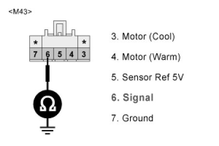 3. Measure resistance between terminal "6" of DR Air Mix actuator and chassis ground.