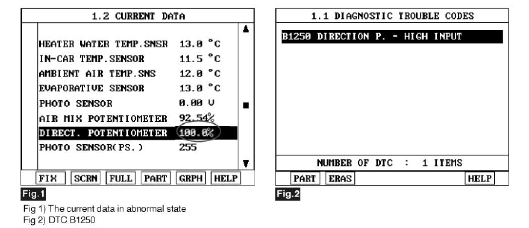 Air Conditioner - B1250 Direction Potentiometer Short (High)-Driver - Monitor Scantool Data
