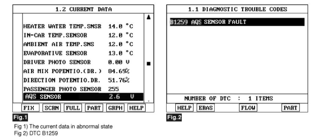 4. Are the DTC B1259 present and is parameter of "AQS sensor" fixed?