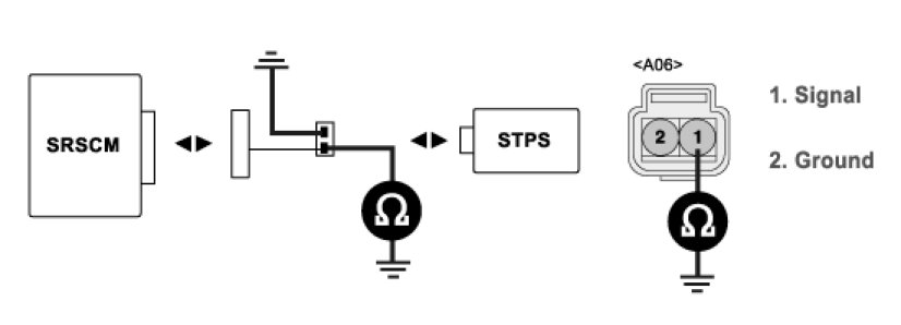 4. Measure resistance between terminal "1" of the STPS harness connector and chassis ground.