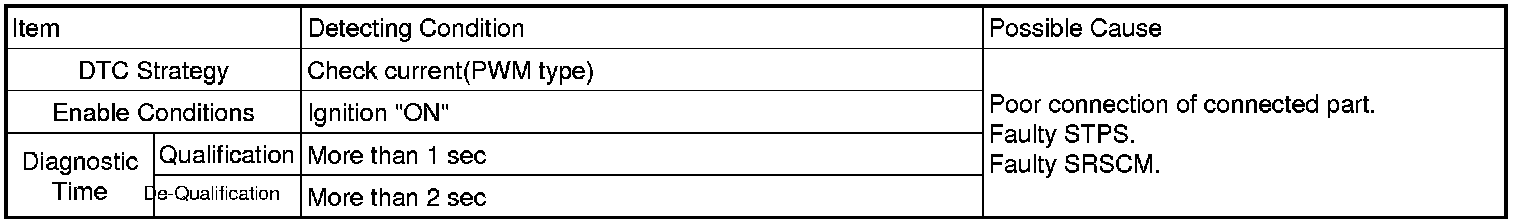 The SRSCM sets DTC B1389 if there is any fault in STPS circuit.